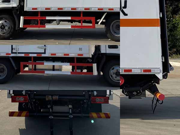 配置  ABS型號(hào):ABS-E,ABS-VI·E;ABS生產(chǎn)企業(yè):威伯科汽車**系統(tǒng)(**)有限公司,廣州瑞立科密汽車電子股份有限公司;安裝有限速裝置;限速裝置限速(km/h):80;安裝有具有衛(wèi)星定位功能的行駛記錄儀;選裝描述:選裝后部無尾板,該車型可選裝ETC車載裝置.運(yùn)輸具有**包裝的不可燃?xì)怏w,安裝2.2類危險(xiǎn)品標(biāo)識(shí);發(fā)動(dòng)機(jī)/油耗值(L/100km)對(duì)應(yīng)關(guān)系為:F2.8NS6B131/10.85,Q28-130E60/11.02;所用材料材質(zhì)、連接方式以及后部防護(hù)裝置的主要尺寸參數(shù)(斷面尺寸和離地高度):側(cè)、后防護(hù)材料均為Q235,螺栓連接;后防護(hù)截面尺寸100×100mm,下邊緣離地高450mm.選裝后部無尾板,后防護(hù)材料為Q235,焊接,截面尺寸100×50mm,下邊緣離地高450mm;尾板、上下坡道(或類似裝置)收起狀態(tài)的水平長度(mm):液壓升降尾板收起狀態(tài)水平長度為280mm,尾板質(zhì)量為350kg;車廂頂部封閉且不可開啟;運(yùn)輸**容器(瓶)包裝的貨物;危險(xiǎn)貨物類項(xiàng)號(hào):2.1,2.2;其他說明:該車為危險(xiǎn)貨物運(yùn)輸車.僅選用排氣管前置,限速裝置,前輪盤式制動(dòng)及子午線輪胎的底盤.轉(zhuǎn)向輪安裝 輪胎爆胎應(yīng)急防護(hù)裝置;廂體側(cè)面選裝開門型式及位置,選裝不帶側(cè)開門,選裝瓦楞板結(jié)構(gòu);廂體側(cè)面板選裝開百葉窗。