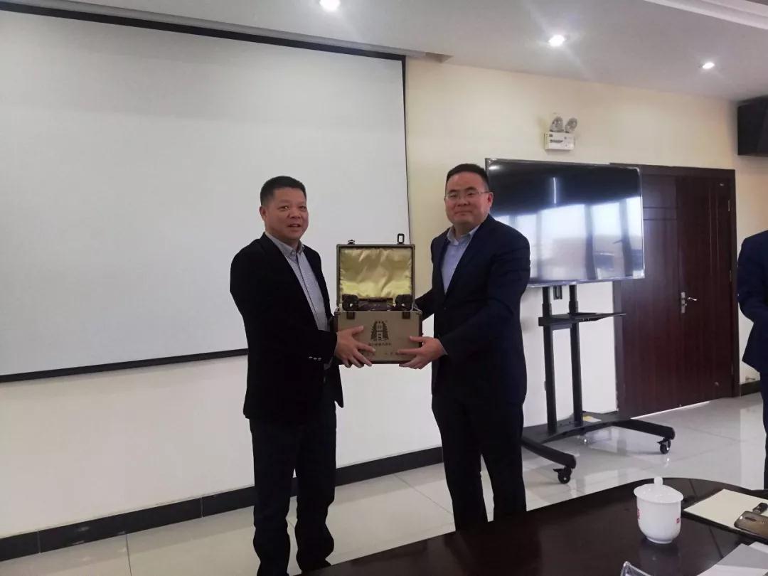 會議結(jié)束后,雙方高層分別代表企業(yè)進行禮品互贈,并合影留念。