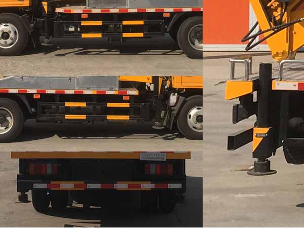 配置  ABS型號:APG3550500A;ABS生產(chǎn)企業(yè):浙江亞太機電股份有限公司;選裝描述:隨底盤選裝黑色輪輞,門框黑色貼膜可選擇取消。選裝前臉、前部燈具;側(cè)后防護情況:側(cè)、后防護材料均采用Q235.側(cè)防護螺栓連接;后防護焊,接截面尺寸100×50mm,下邊緣離地高420mm;專用功能及裝置:該車用途為搶修電力、通訊、路燈等高空作業(yè),主要裝置為升降平臺,作業(yè)臂;