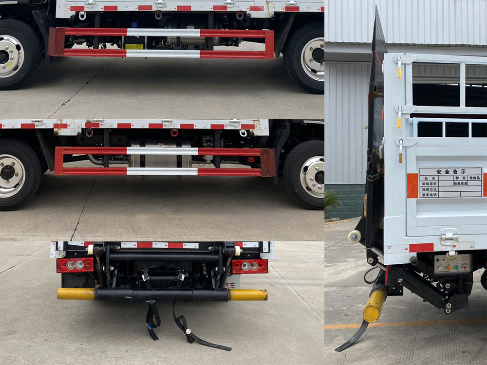 其它:1、該車適用于運輸危險品。類項號:2.1,2.2。該車用于運輸具有獨立容器(瓶)包裝的物品。2、側(cè),后防護(hù)材料均為Q235,螺栓連接,后防護(hù)截面尺寸φ100mm,下邊緣離地高430mm;選裝后部無尾板時,后防護(hù)材料為Q235,焊接,截面尺寸(mm):100×50,下邊緣離地高430mm。選裝欄板樣式,選裝尾板。尾板收起狀態(tài)水平長度為280mm,尾板質(zhì)量為350kg。3、整備質(zhì)量含備胎,滅火器及隨車工具;貨廂重量為570kg;材質(zhì)/厚度:底板Q235/3mm;側(cè)墻板Q235/1.5mm;后墻板Q235/1.0mm。4、僅選用排氣管前置、限速裝置(限速80km/h)、前輪盤式制動及子午線輪胎的底盤,轉(zhuǎn)向輪安裝輪胎爆胎應(yīng)急防護(hù)裝置,安裝具有衛(wèi)星定位功能的行駛記錄儀,僅選用3360mm軸距,選裝ETC。ABS系統(tǒng)控制器型號/生產(chǎn)企業(yè): :YF8/武漢元豐汽車電控系統(tǒng)有限公司,ABS-E/威伯科汽車控制系統(tǒng)(中國)有限公司,ABS-VI?E/廣州瑞立科密汽車電子股份有限公司,YF9/武漢元豐汽車電控系統(tǒng)有限公司。發(fā)動機(jī)/油耗值(L/100km)對應(yīng)關(guān)系為: D20TCIF2/11.22,D25TCIF1/11.16, D20TCIF1/11.22。